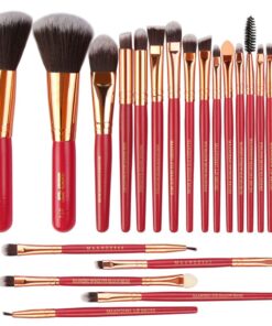 22 Piece Pro Powder Foundation Eyeshadow Makeup Brush Set-Red