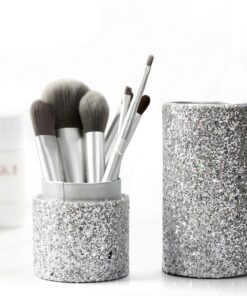 7 Piece Silver Foundation Makeup Brushes Set with Shining Brush Holder