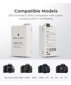 K&F Canon LP-E8 Battery Kit – 2 Batteries and Dual Charger | KF28.0027