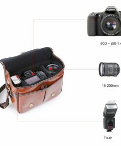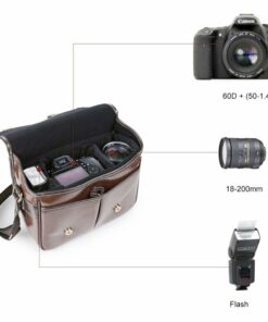 Vintage Waterproof PU Leather DSLR Camera Shoulder Bag – Dark Brown