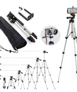 110cm Portable Aluminium Travel Tripod with Phone Mount Adapter – Silver