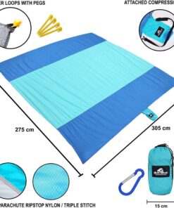 Sun Ninja Beach and Picnic Blanket – Dark Blue, turquoise and white