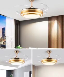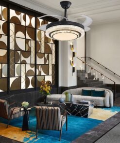 36 Inch Modern Ceiling Light with Fans Remote Control Retractable Blades