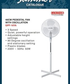 Goldair – 40cm Oscillating Pedestal Fan – White