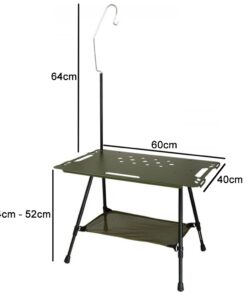 Metal Camping Table with Lantern Holder & Carry Bag (Olive Green)