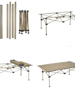 Aluminum Alloy Outdoor Folding Dining Table & 2 Bule Color Armchair