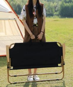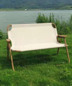 2 Persons Wood Armchair Double Backrest Folding Camping Chair