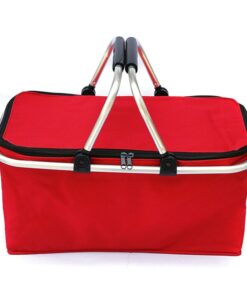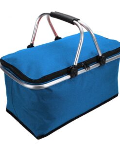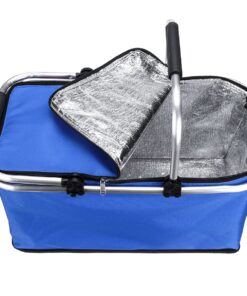 Folding Insulated Picnic Cooler Bag with Aluminum Handles – Blue