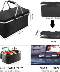 46CM Foldable Picnic Basket Shopping Basket Outdoor Camping Cooler Bag – Black