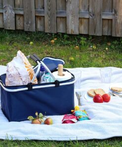 46CM Foldable Picnic Basket Shopping Basket Outdoor Camping Cooler Bag – Blue