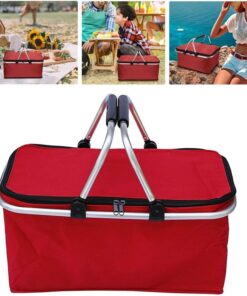 46CM Foldable Picnic Basket Shopping Basket Outdoor Camping Cooler Bag – Red