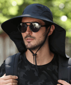 Fishing Hat Breathable Sun Protection Outdoor Hat with Neck Flap – Black