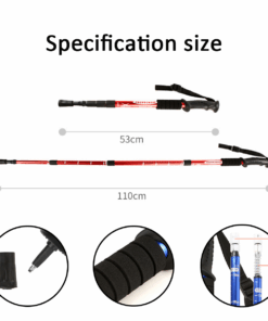 Walking Stick Trekking Poles Folding Cane with Handle Anti-slip Safe Hiking – Red, Black