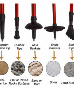 Walking Sticks Set Hiking Sticks Trekking Poles Lightweight Collapsible – Red
