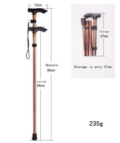 Camping Foldable Portable Hiking Walking Stick With Military Carabiner Clip – Gold