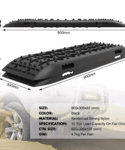 Traction Mats Trapped Recovery Boards for Off-Road Mud, Sand, Snow – 2 Pack – Black