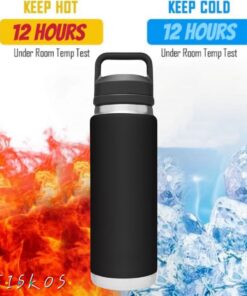 PEISKOS 800ml Vacuum Insulated Flask Stainless Steel Bottle with Chug Cap – Dark Black