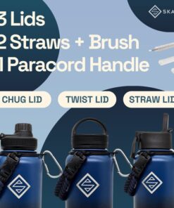SKAULT – 1.2L Stainless Steel Double Wall Flask Water Bottle with 3 lids – Indigo Eclipse