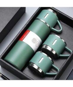 Stainless Steel Thermo Vacuum Insulated Flask Bottle with Cups-Green-500ml