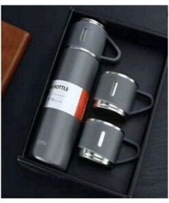 Stainless Steel Thermo Vacuum Insulated Flask Bottle with Cups-Grey-500ml