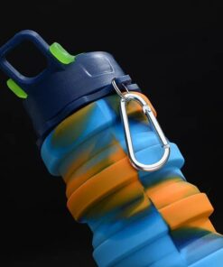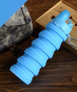 BPA Free Outdoor Collapsible Silicone Water Bottle with Hook – Blue