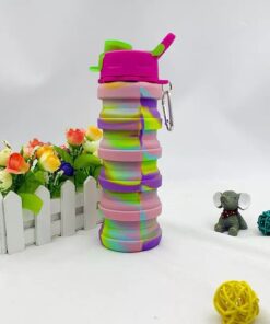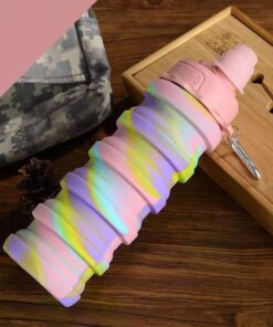 BPA Free Outdoor Collapsible Silicone Water Bottle with Hook – Rainbow Pink