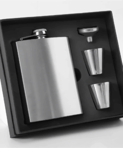 200ml Stainless Steel Hip Flask Set + Funnel & Stainless Steel Shot Glasses – Silver