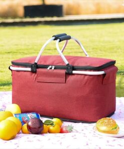 Foldable Foil Insulated Picnic Basket Food Beverage Carrier Bag Cooler Bag – Red