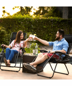Zero Gravity Foldable Indoor/Outdoor Recliner Chair with Detachable Cushion – Black