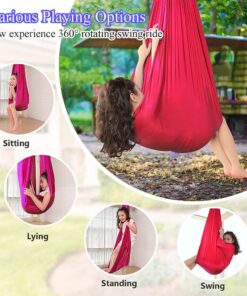 Sensory Swing Therapy Hammock Yoga Swing for Kids with 360 Swivel Hanger – Red