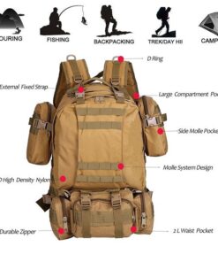 Tactical Backpack with 3 Molle Bags – Khaki (55l)