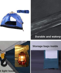 200x150cm 2 Person Waterproof Dome Pop Up Tent with Sunroof & Inner Lining – Green, Orange