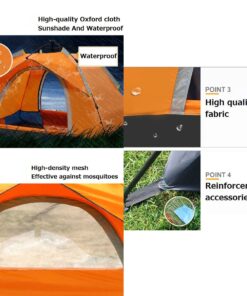200x150cm 2 Person 2 Door Dome Pop Up Tent with Sunroof & Inner Lining – Green, Orange