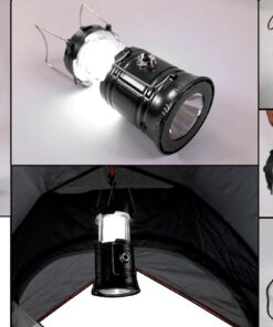 205x130cm Waterproof 2 Man Instant Tent with Cotton Hammock & Solar Lantern – Blue, Black