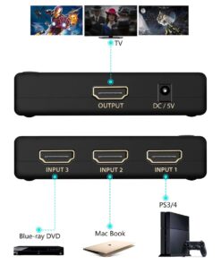 3 Port HDMi Switch 1080P with Remote Control 4Kx2K Ultra HD for DVD HDTV