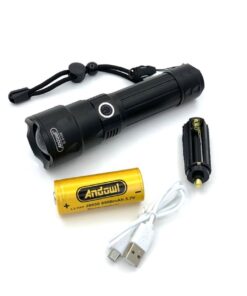 Andowl Large Ultra Bright Rechargeable LED Tactical Torch with Zoom