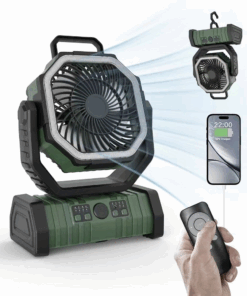 F6 – Portable Outdoor Oscillating LED & Remote Controlled Fan – Green
