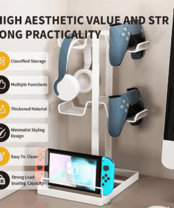 Headphone Stand, Game Controller Holder and Headset Holder for Desk – White