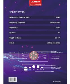 Omega 8″ Outdoor Karaoke Speaker Battery-Powered For Loadshedding OP-82507