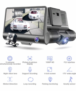 DashCam Car DVR 4 Inch Full HD 1080P 3 Lens Auto Video Recorder – Black