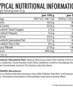 YL Vegan Keto Bar – 52g Bar – Coconut Dream – 6 Pack