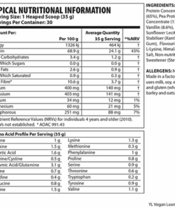 YL Vegan Lean Protein Shake – Sugar Free – Vanilla – 1.05kg