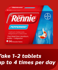 Rennie Peppermint Antacid 96 Tablets -Fast Relief for Heartburn
