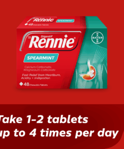 Rennie Spearmint – 48 Tablets Antacid – Fast-Acting Relief for Heartburn
