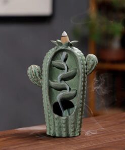 Cactus Shaped Backflow Incense Burner – Green with 20 Incense cones