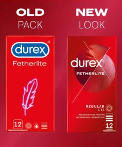 Durex 12s, Thinner Latex Condoms with Lubricant, Fetherlite