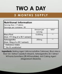 Maca Root Tablets with Ashwagandha High Strength 3 Month Supply