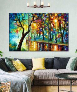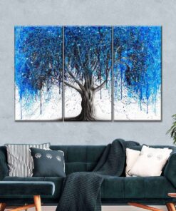 Canvas Art – Blue Moonlight Tree 3 Piece Abstract Painting Canvas Wall Art