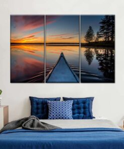 Canvas Art – Canoe At Sunset 3 Piece Canvas Wall Art Decor