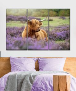 Canvas Art – Highland Cow In Paradise 3 Piece Canvas Wall Art Decor